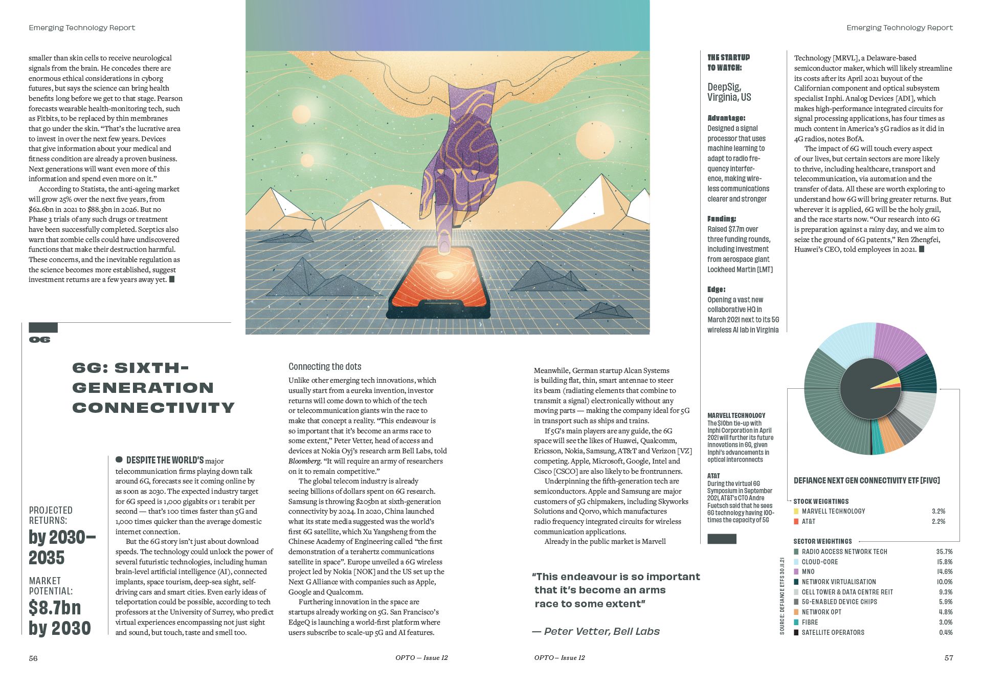 Illustration series about emerging technologies for the British magazine OPTO - CMC Markets, produced by The Crown & CO studio.